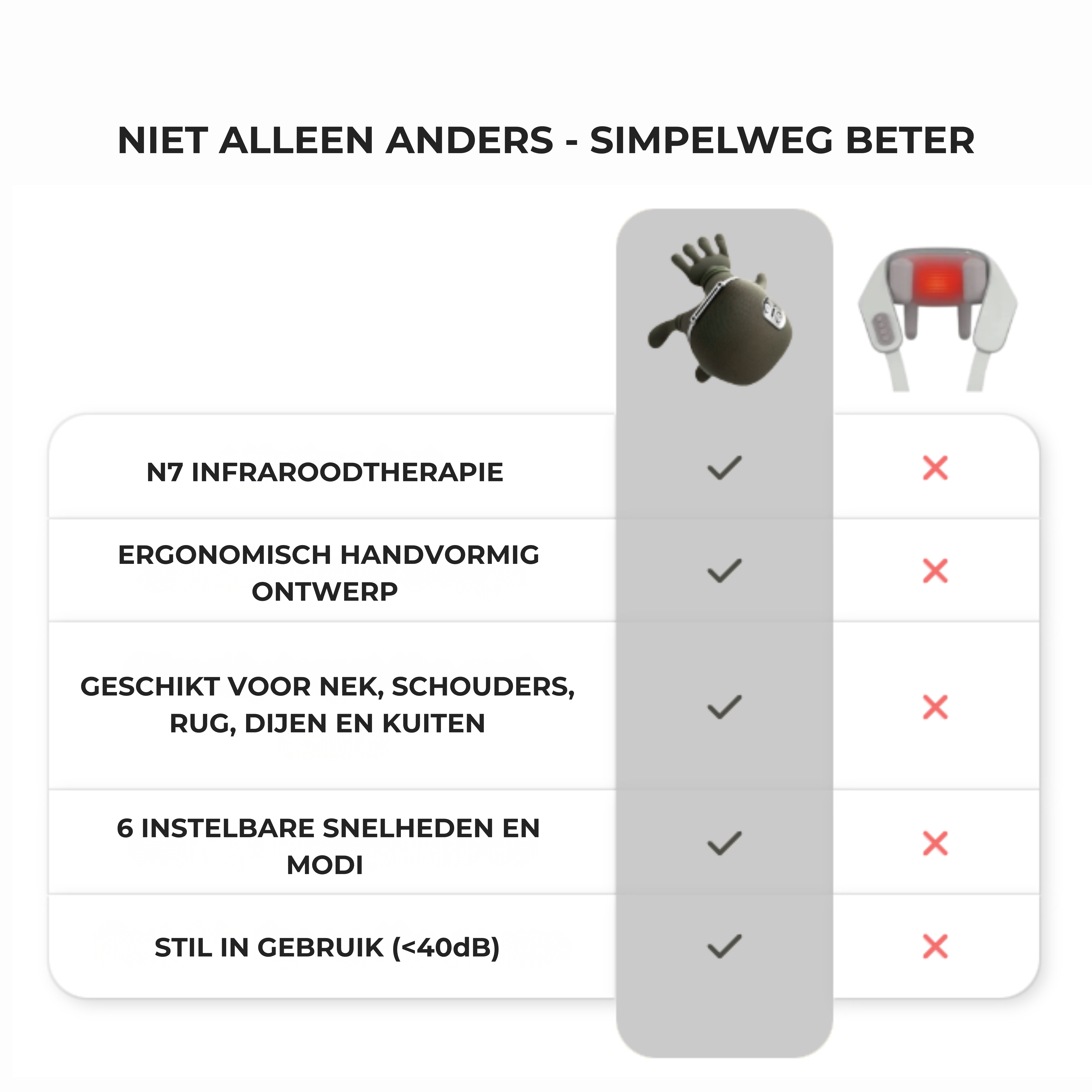 The ComfortGrip offers 3 safe heating settings (38°C, 42°C, 46°C), 3 speeds (low, medium, high), 3 massage modes and an infrared N7 function for deep relaxation.