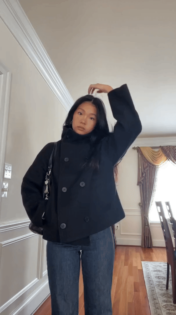 The elegant, business-like design with decorative buttons and a high collar immediately gives you a neat and fashionable look.