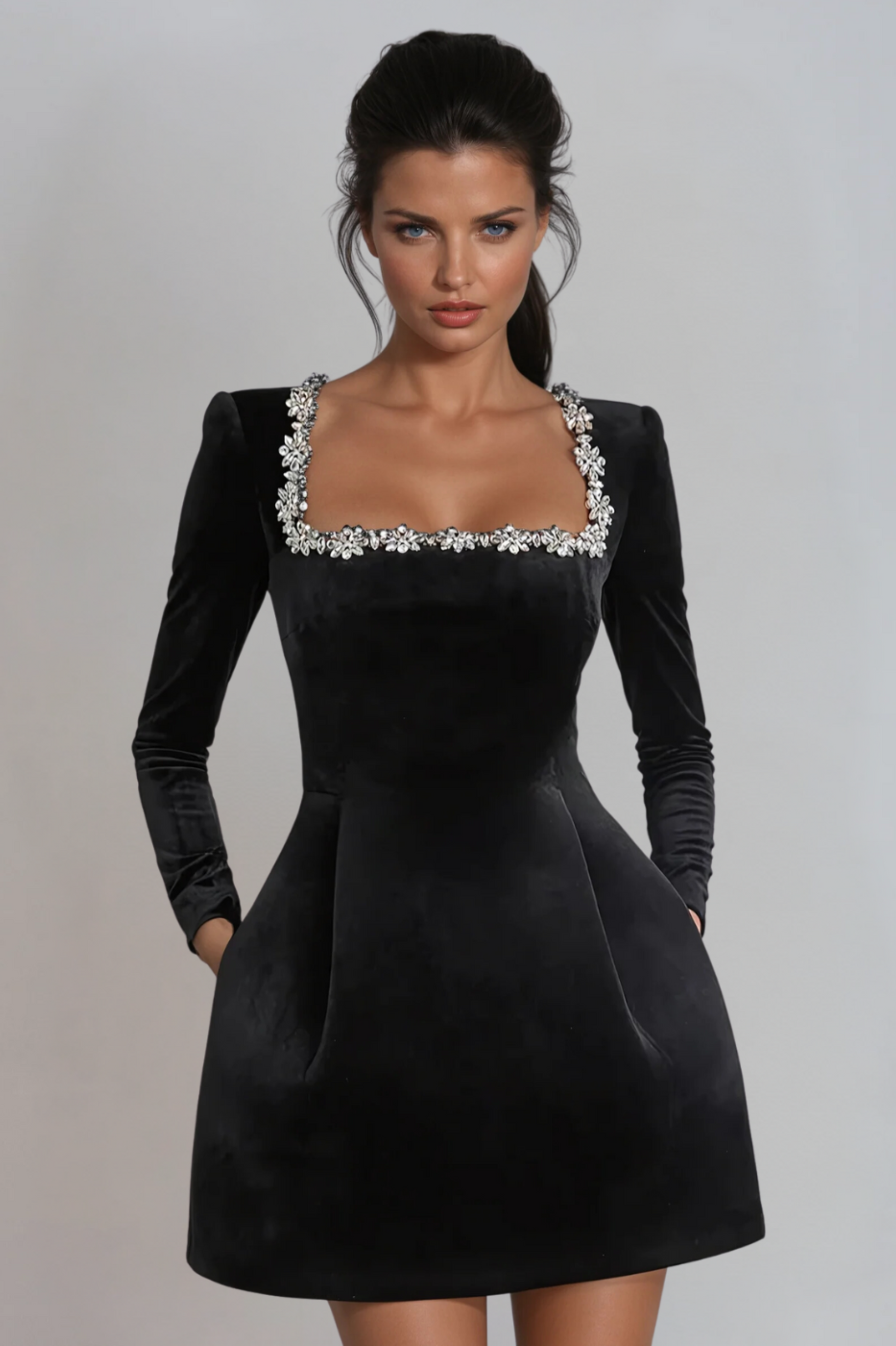 Designed for moments where simplicity and style collide. With its square neckline, long sleeves, and subtle A-line fit, it exudes timeless elegance. The flowing fabric feels comfortable and moves effortlessly with you.